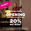 *Gültig vom 20.11. bis 29.11.2025 nur in mister*lady Store im Kaufland Pfullingen, Max-Eyth-Straße 34, 72793 Pfullingen. Nicht mit anderen Rabatten und Aktionen kombinierbar. Artikel der Firmen Trend-Design GmbH und BROADWAY GmbH sind von Rabattaktionen ausgeschlossen. Nicht einlösbar auf Gutscheinkarten.