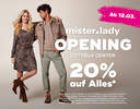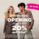 *Gültig vom 12.03.bis 21.03.2026 nur in mister*lady Store im Cottbus Center, Sielower Chaussee 38, 03044 Cottbus. Nicht mit anderen Rabatten und Aktionen kombinierbar. Artikel der Firmen Trend-Design GmbH und BROADWAY GmbH sind von Rabattaktionen ausgeschlossen. Nicht einlösbar auf Gutscheinkarten.