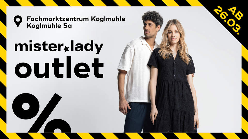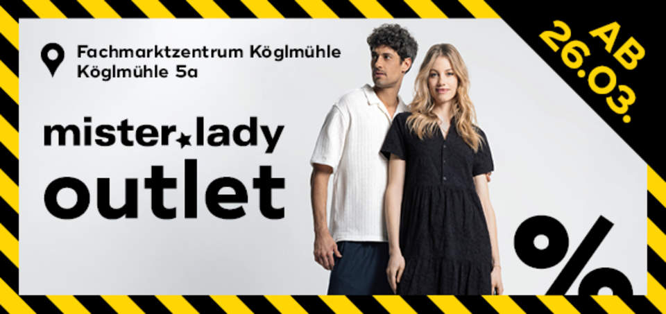 Am Donnerstag, den 26.03.2026, eröffnet das Schwabacher Fashion Label mister*lady seinen neuen OUTLET STORE im Fachmarktzentrum Köglmühle in Mainburg.